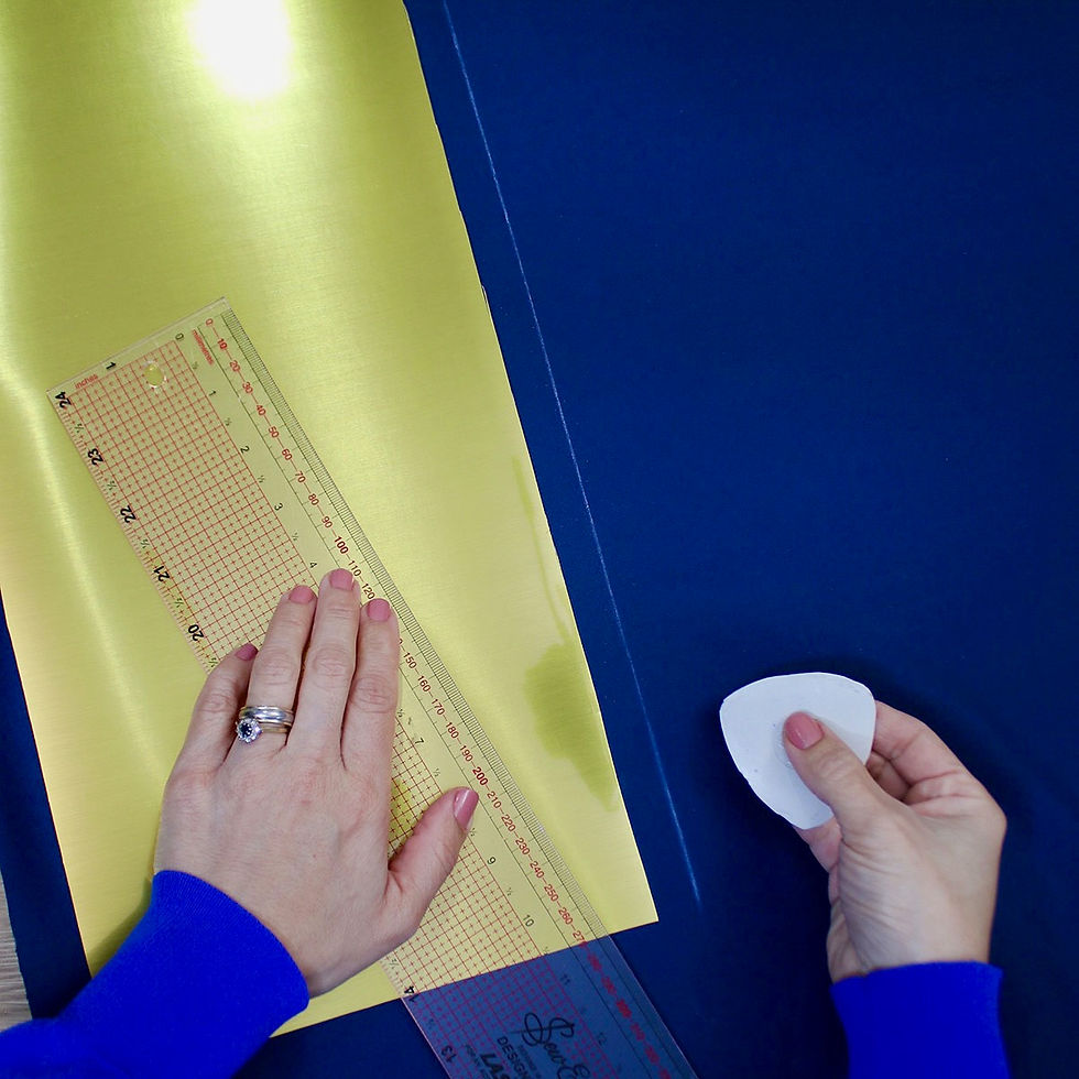 5. Measure, from the top and bottom edge between 1.5 and 2cm and mark using tailors chalk or a pencil. This will give you the extra fabric needed to tuck around the rings for a neat finish.